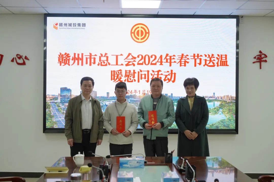 1月19日,贛州市總工會黨組成員、副主席徐雅靜一行到贛州城投集團開展春節(jié)送溫暖慰問活動,走訪慰問困難職工,并致以新春美好祝福。集團黨委副書記王遠平,集團黨群工作部、文化宣傳部負責(zé)人參加慰問。