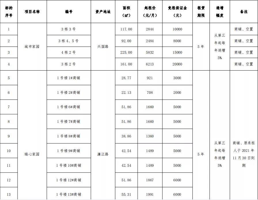 競租報(bào)名時(shí)間:公告之日起至2021年9月28日17:00止;