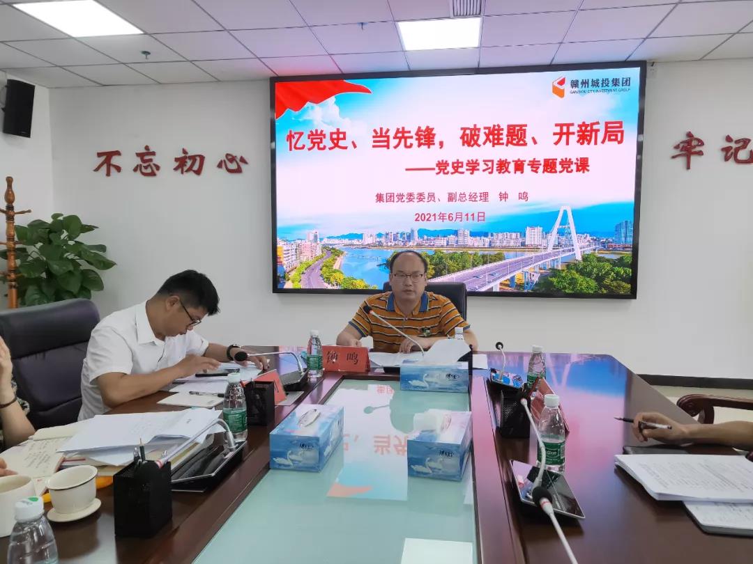 根據(jù)贛州城投集團黨委的統(tǒng)一部署,日前,集團黨委委員、副總經(jīng)理鐘鳴講授黨史學習教育專題黨課,生態(tài)投資公司黨支部、土地置業(yè)公司黨支部、振興實業(yè)公司黨支部全體黨員及入黨積極分子參加。